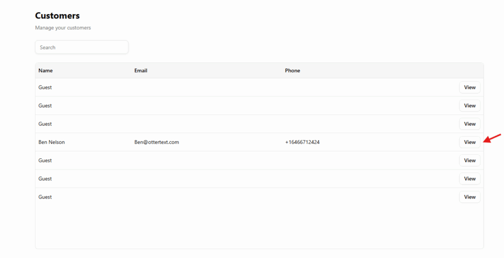 Selecting View for a customer opens their profile.