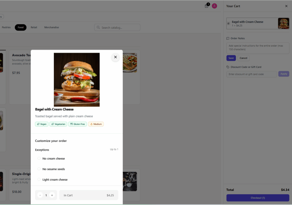 Show clear allergen details on menu items, giving customers visibility into ingredients and helping them make informed ordering decisions.