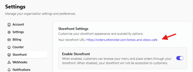 Grab your storefront link from OtterOrder Storefront